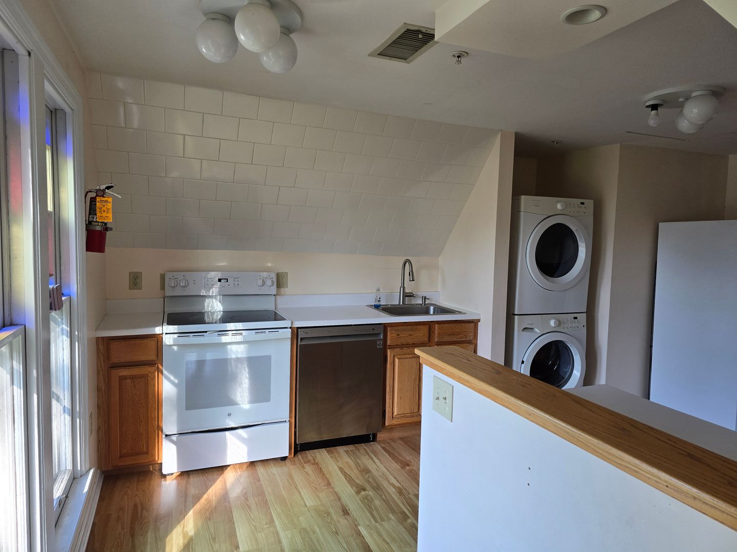 This unit has modern appliances included such as dishwasher, and washer & dryer.